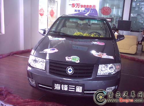 廣西汽車網(wǎng)編輯來到位于南寧市安吉大道的南寧市運澤汽車銷售有限責(zé)任公司采訪策劃員榮小姐,她告訴本站編輯,由于上海華普外表漂亮、節(jié)油又經(jīng)濟(jì),目前市場價僅在39888元~62888元,所以華普一上市就呈搶購的勢頭,本站編輯看到現(xiàn)場的兩款海鋒、海域系列都標(biāo)有已訂購字樣,看來這位漂亮的榮小姐說的話一點也不夸張!