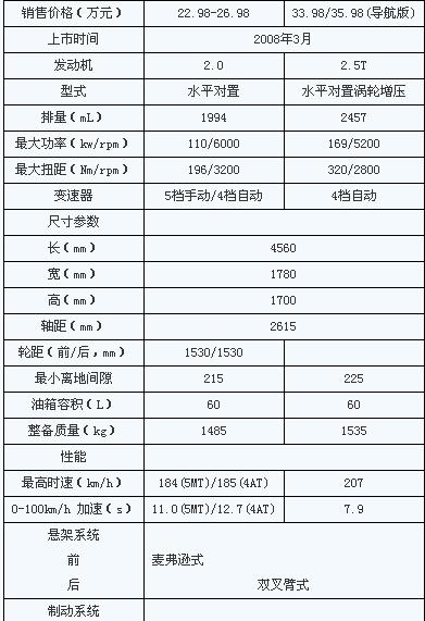 斯巴魯09款森林人技術(shù)參數(shù)表: