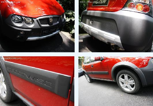 名爵MG3 SW外形中最引人注目的是其堅(jiān)固粗大的與車身材質(zhì)截然不同的黑色塑料前后保險(xiǎn)杠,車尾保險(xiǎn)杠上還有“MG”的LOGO。輪眉上和車身側(cè)面都有黑色塑料防護(hù)條,即突出了個(gè)性,又可以在一些小刮蹭中,因?yàn)槭撬芰喜馁|(zhì),并不會(huì)對(duì)車身造成的損傷,劃痕僅會(huì)在黑色的保險(xiǎn)杠上留下一條輕微痕跡,也不會(huì)影響美觀。
