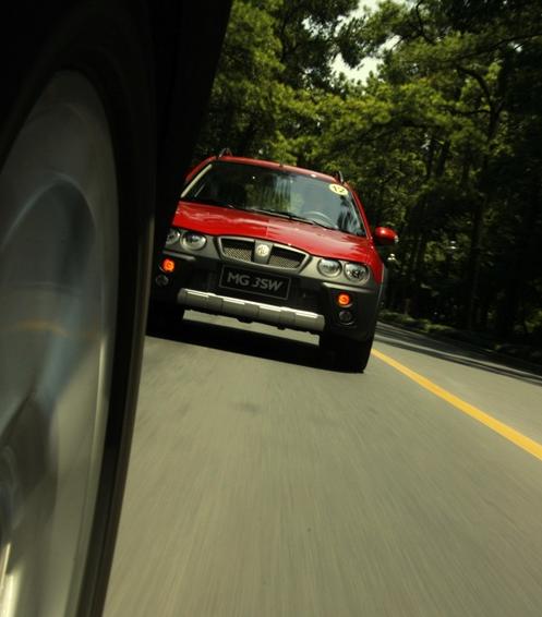 在開始的路段一直在使用D檔模式,CVT變速箱換擋平順,沒(méi)有絲毫的頓挫感。熟悉了一段后將排檔桿撥入Sport運(yùn)動(dòng)模式,在這個(gè)模式下全力踩下油門,發(fā)動(dòng)機(jī)的轉(zhuǎn)速會(huì)穩(wěn)定在5500轉(zhuǎn)/分左右,廠家介紹MG 3SW的1.8升發(fā)動(dòng)機(jī),在城市道路日常使用,在2000—3000轉(zhuǎn)/分區(qū)間內(nèi)便能有一次扭矩峰值的出現(xiàn),但在此次山路駕駛中,還是覺得發(fā)動(dòng)機(jī)在4000轉(zhuǎn)左右再次出現(xiàn)的扭矩峰值時(shí)可獲得更強(qiáng)勁的動(dòng)力,爬坡能力更強(qiáng)。MG 3SW在上坡的山路上的表現(xiàn)不錯(cuò),由于使用了205的寬胎,再加上偏硬的懸架調(diào)校, MG3在彎道的抓地力和車身側(cè)傾控制都相當(dāng)出色,急彎出沒(méi)有明顯側(cè)傾的感覺。由于采用了四輪碟剎,在山中的盤山下坡路段,剎車靈敏、反應(yīng)及時(shí)。