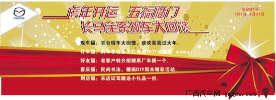 現(xiàn)車福:長安馬自達百臺現(xiàn)車大回饋,現(xiàn)車即提歡喜過大年。