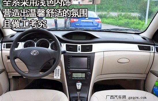 風神S30是一款面向家庭的三廂車,所以全系采用了很淺的米黃色內飾,營造出溫馨舒適的氛圍。風神S30普通版車型的中控臺樣式很傳統(tǒng),收音機和空調面板比較中庸,但也不失實用。風神S30高配版采用的是液晶顯示屏,按鍵清晰明了,很容易上手。中控臺最上邊行車電腦除了基本的信息外,還設有瞬時油耗、平均油耗、續(xù)航里程等功能。三輻式的方向盤造型圓潤、大小適中,外圓環(huán)輻由真皮包裹,手感非常不錯。