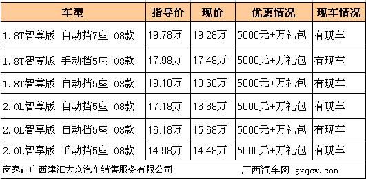 編輯從廣西建匯大眾汽車銷售服務(wù)有限公司了解到,途安車型近期推出最高達5000元的現(xiàn)金優(yōu)惠另加1萬元大禮包。具體信息如下: