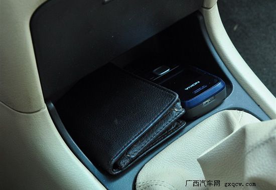 中控臺中央頂端這個儲物盒可以放置錢包或者手機等小件物品