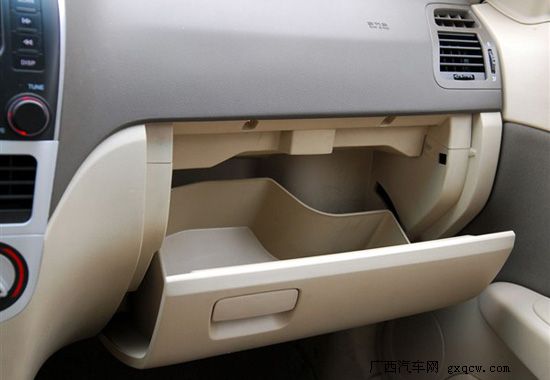 風(fēng)云2的儲物空間有進步也有遺憾,它在后門和后排一共設(shè)計了三個杯座,但是前排就沒有可以放置水杯的位置。前排兩側(cè)車門上的空間都沒有得到很好的應(yīng)用,能放置的物品尺寸有限,中控臺頂端有帶蓋的儲物格,可以放置一些容易損壞的小物品。帶阻尼的手套箱容積不小,值得贊一下。