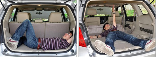 對(duì)于1.7米的筆者,騎士的后排頭部、腿部空間都比較寬裕;而將后排座椅完全放倒后,可擁有比較可觀的行李儲(chǔ)放空間。
