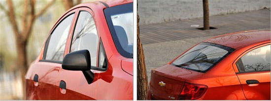 顯然,新賽歐的外形屬于很規(guī)矩的那一類。在它的身上,你能夠找到雪佛蘭現(xiàn)今主打的家族特征。特別是那個(gè)帶著金領(lǐng)結(jié)的前臉,活脫一個(gè)小號(hào)科魯茲,如果是琥珀橙(測(cè)試車的顏色)或者皓空藍(lán)配色車型的話,不僅看上去很協(xié)調(diào),而且不乏時(shí)尚感,包括大燈在內(nèi)的細(xì)節(jié)造型甚至比定位稍高的樂風(fēng)還要更精神、更年輕一些。