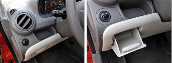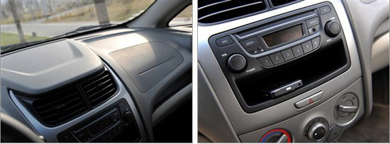 左圖:中控臺上部也可放置物品;右圖:收音機下方的儲物格內(nèi)有防滑襯里,適合放置手機等。