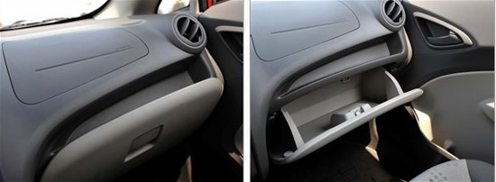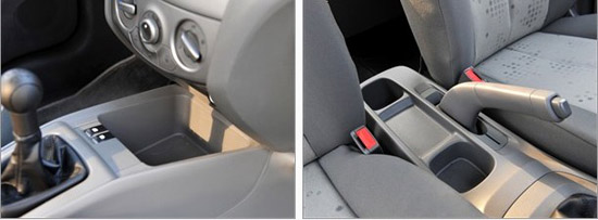 左圖:排擋桿前方的儲物格融了不。挥覉D:前排座椅中央的兩個儲物格,前面的適合放置煙灰缸。