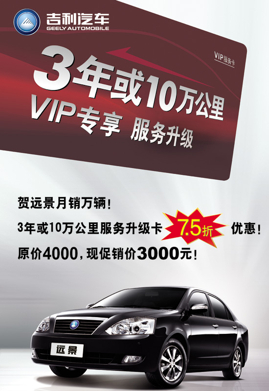 吉利遠(yuǎn)景服務(wù)再升級(jí)了!自6月1日起,凡在吉利南寧開河4S店購買吉利遠(yuǎn)景的客戶,除可以享受購車的優(yōu)惠政策外,還可以加贈(zèng)價(jià)值4000元的服務(wù)升級(jí)卡。
