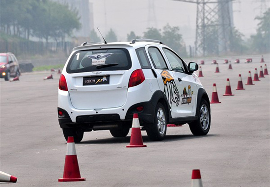 此次體驗活動一共設(shè)計了四個環(huán)節(jié),即連續(xù)穿樁、之字形拱門穿越、8字環(huán)環(huán)繞、以及模擬濕滑路面的制動變線測試。參加體驗的M1和X1均采用奇瑞自研的1.3排量473F發(fā)動機,最大功率均為62千瓦,只不過在調(diào)校上面有細(xì)微的區(qū)別。而整備質(zhì)量上71公斤的差別,加上輪胎和后懸掛的差異,是決定這兩款小車在上面四個環(huán)節(jié)中表現(xiàn)差異的最主要因素。