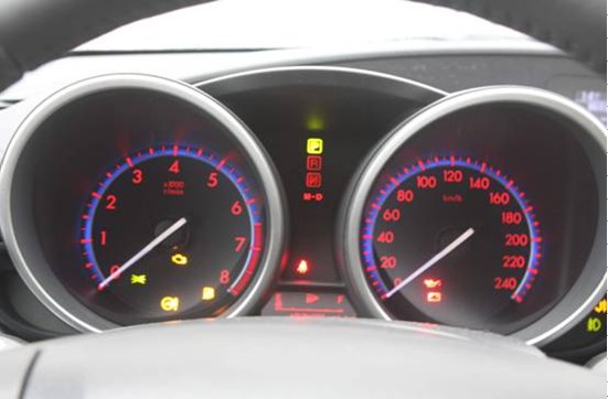 在駕駛界面上還有一個(gè)令人感到耳目一新的設(shè)計(jì)是雙層儀表總成,新一代的Mazda3由原來(lái)的三炮筒式儀表板變成動(dòng)感的雙筒式潛望鏡儀表板,顯得更為年輕活力,配色上亦跟隨睿翼的腳步,以紅、藍(lán)、白三色作為點(diǎn)綴。在潛望式儀表板的后部,一道半圓曲線劃至中控臺(tái)上沿,形成第二層儀表板,車廠將車輛行駛信息和空調(diào)及音響信息兩塊顯示屏放置于此,并通過(guò)方向盤上的十字按鍵組合就可以便捷提取多項(xiàng)油耗及行駛信息,使得駕駛員不用離開(kāi)前視線的范圍就可以縱覽全局,將更多的注意力集中于車輛駕駛。