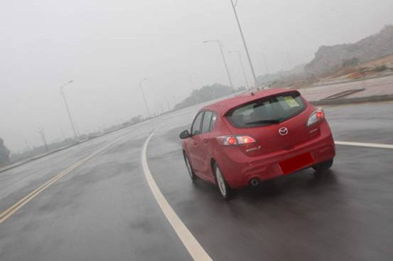 來(lái)到直線加速測(cè)試的路段,關(guān)掉DSC以燒胎的方式起步,前輪輕微的滑動(dòng)一下便沖出起跑線,2.0L的引擎未必能帶來(lái)多強(qiáng)的推背感,因而也不要對(duì)Mazda3的加速度有過(guò)高的期望,指針每每逼近紅線便會(huì)換擋,中間的動(dòng)力銜接也較為平滑,三次100km/h加速測(cè)試,一次10.3秒,一次10.4秒,都接近廠方所公布的10.7秒數(shù)據(jù)。而后一次切作手動(dòng)模式,狠狠心讓指針過(guò)紅線500rpm之后再升擋,2擋之上車子就破百時(shí)速,最后錄得的最快紀(jì)錄居然是9.57秒,比車廠數(shù)據(jù)足足快了1秒多!日系性能車的寬容度一般較高,能夠提供出殺破紅線的樂(lè)趣,并且也不會(huì)強(qiáng)制跳檔,Mazda3也保有了這種樂(lè)趣。