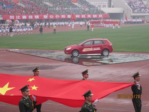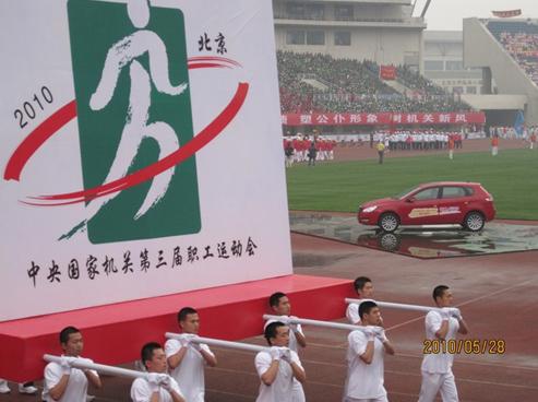 作為中央國家機關第三屆職工運動會贊助單位之一,東風風神在會場拉橫幅預祝此次盛會圓滿成功。10輛"中級車雙雄"——東風風神S30和東風風神H30成為大會指定用車,精彩亮相開幕式。全體參賽選手統一身穿帶著東風風神標志的服裝入場及參賽,現場舉行了大型的太極拳表演和團體操表演。開幕式后,國家機關各參加單位舉行了廣播操團體比賽。