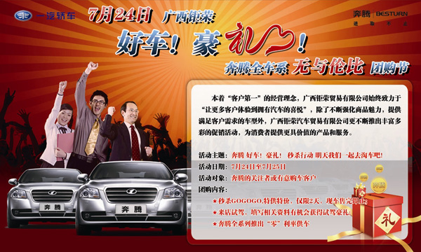 活動(dòng)主題:奔騰全系 好車!豪禮! 秒殺行動(dòng) 明天我們一起去淘車吧!