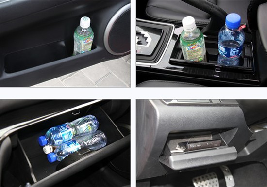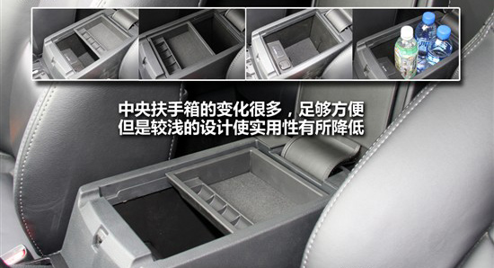 而在車內(nèi)儲物空間方面,睿翼轎跑給我的感覺是新鮮的創(chuàng)意和想法很多,但實用性有待進一步加強。比如中央扶手箱的設計,上面可以隨意分層組合的小板設計就很好,但其實扶手箱本身并不深,放了正常的礦泉水就蓋不上了,而里面的AUX及USB接口也占用了一部分空間。除此以外,睿翼轎跑車內(nèi)的儲物格設計還是比較讓人滿意的。
