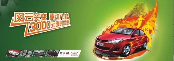 另外,風(fēng)云2正在開展的“猜世界杯 得風(fēng)云2”活動(dòng),只要注冊(cè)即可享終端1000元購車優(yōu)惠,如此一來,最高優(yōu)惠將達(dá)到4000元, 4.78萬元即可入手風(fēng)云2兩廂實(shí)力型。由于本次促銷活動(dòng)時(shí)間緊促、資源緊張,鑫廣達(dá)奇瑞經(jīng)銷商提醒廣大消費(fèi)者盡快行動(dòng),不要錯(cuò)過此次良機(jī)!