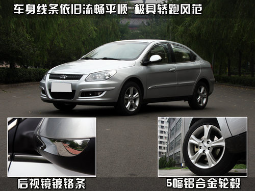 奇瑞A3的設(shè)計風(fēng)格之所以能夠得到很多人的認(rèn)可,與他偏歐洲的設(shè)計理念密不可分。流暢平順的車身線條,令整車極具轎跑風(fēng)范。后視鏡上配備了鍍鉻條,除了裝飾作用外,夜間會車也可起到反光作用。五幅式鋁合金輪轂造型動感十足,彰顯運動氣息。