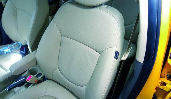 與在展臺上高高在上且在美輪美奐燈光映襯下的VERNA不同,處在自然環(huán)境和光線下的瑞納感覺更加真實自然。除了黑、白、銀、金這些“大眾”車身顏色外,瑞納所特有的炫麗黃、寶石藍和魅惑紅則帶給了我不少驚喜,這些高飽和度的色彩似乎更加符合瑞納靈動時尚的氣質(zhì)。而運動化的前后保險杠配合車頂流暢的弧線、車身側(cè)面凌厲的棱線、蓄施待發(fā)的“X”形前臉與尾部上翹的短鴨尾這些動感元素都帶給了瑞納不少的跑味,按時下流行的說法這是轎跑設(shè)計。雖然是一款三廂小車,但和諧的車身比例與動感時尚的用心設(shè)計也著實能讓瑞納給人留下相當不錯的第一印象。