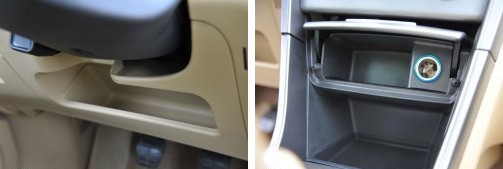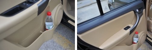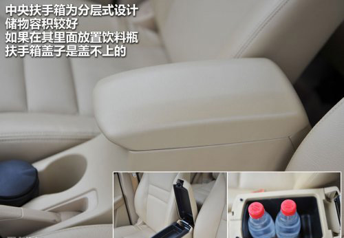 首先是儲物空間,我們能夠在該車型的座艙里面見到一些容積較大的儲物盒或儲物槽,比如在中控臺的最下方有一個儲物槽,這個儲物槽可以放下至少4包香煙。另外,在其上方點煙器的左邊也有一個用來放置香煙的儲物槽,當然了,這個地方還可以放一些其它類型的小物品,比如錢包。中央扶手箱前方有兩個形狀一模一樣的圓形儲物槽,它可以放置兩瓶飲料。然而在方向盤左下方的那個設(shè)置并不是一個儲物盒,取下?lián)醢逯罄锩鎱s是一個保險盒。