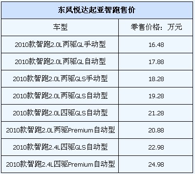 這次小編要跟大家一起了解的是東風(fēng)起亞智跑2.4L的頂配車型,在了解這款車之前,我們先看一下智跑不同配置的對(duì)應(yīng)價(jià)格。