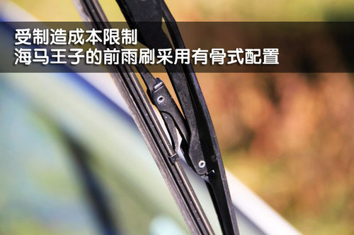 海馬王子的車頭采用雙笑臉造型,主要是設(shè)計(jì)了網(wǎng)狀造型的進(jìn)氣格柵和雙圓形前大燈,看上去親切可愛。另外,海馬王子的前臉還配備了圓形的前霧燈,實(shí)用性很好。但由于受成本的限制原因,海馬王子的前雨刷采用有骨式設(shè)計(jì),不過消費(fèi)者可以購車后自行更換無骨式,費(fèi)用不高,幾十塊搞定。