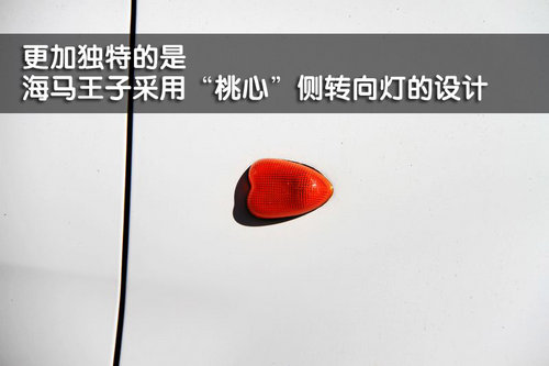 比較獨(dú)特的是,海馬王子的側(cè)轉(zhuǎn)向燈采用橘紅色“桃心”的設(shè)計(jì)樣式,相信這也能吸引很多女性消費(fèi)者的眼球。海馬王子的頂部天線采用普通的黑色細(xì)線設(shè)計(jì),并且位置設(shè)計(jì)在車身的前端,與很多車型都不一樣。