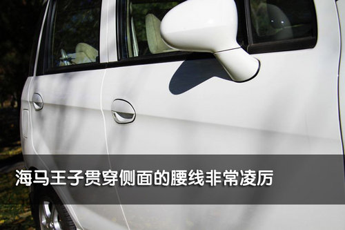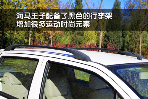 海馬王子配備了黑色行李架,作為一款微型車來說比較難得,可以大大增加整車外觀的時(shí)尚氣息。在同級車型中,只有奇瑞QQ3高配車型才有這樣的配置。海馬王子的車身兩側(cè)設(shè)計(jì)了凌厲的腰線,給這款車帶來了更多的張力。