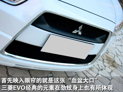 單從名字上我們就可以很直接的了解到這款車的特性,勁與炫。首選我們先來看看它在設(shè)計(jì)方面是否夠炫!第一眼看到勁炫,我們可以很容易分辨出它是一款三菱車,當(dāng)然不是通過看車標(biāo)這么惡俗。三菱全新家族式前臉設(shè)計(jì)同樣被應(yīng)用在勁炫身上,這一代前臉設(shè)計(jì)靈感全部來自神車EVO,極具攻擊性的鯊魚嘴造型一度成為風(fēng)靡全球的經(jīng)典元素。