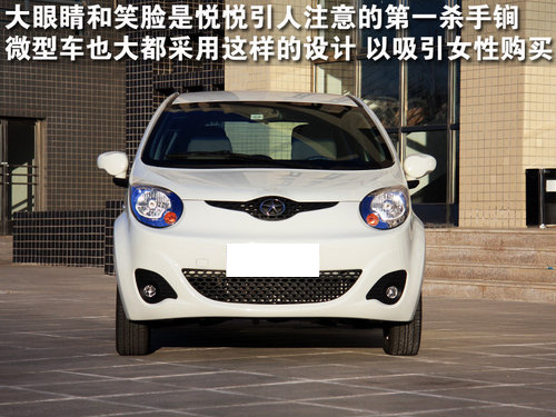 微型車(chē)想要討人喜歡,那最直接的方法就是走可愛(ài)路線,要說(shuō)什么樣的車(chē)可愛(ài)?那一定是大眼睛和大笑臉,悅悅的前臉設(shè)計(jì)比較簡(jiǎn)潔,大燈、中網(wǎng)、霧燈和格柵基礎(chǔ)精煉的設(shè)計(jì),讓這款小車(chē)看起來(lái)十分精致。