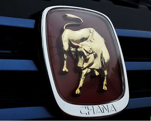 車標(biāo)“奮進(jìn)的公牛”,寓意著“力量、進(jìn)取、勤勞、可靠、勇于挑戰(zhàn)、吉祥”。紅色,代表激情與斗志。新穎的雙標(biāo)式設(shè)計(jì),車前方采用獨(dú)特的“奮進(jìn)的公!避嚇(biāo),車尾仍保留長安Logo,彰顯長安金牛星在微車家族中的至尊地位,代表其超越了目前普通微車的發(fā)展水平,成為新一代微車的典范。同行試駕和媒體和體驗(yàn)者戲稱:“車標(biāo)與國際豪車蘭博基尼相近,長安金牛星,微客中的蘭博基尼”。