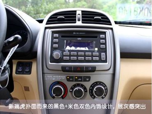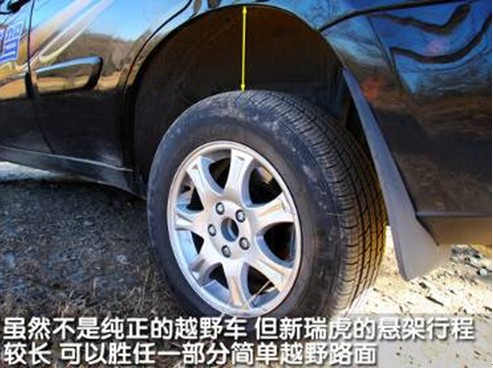 第一眼看到新瑞虎實(shí)車,感覺猶如流體雕塑一般硬朗、遒勁。雙翼式前臉設(shè)計(jì)風(fēng)格十分彪悍,鷹眼式大燈明快、大氣;新車前保險(xiǎn)桿底部簡(jiǎn)潔上翹,為25度的接近角提供了支持;尾部仍然采用了備胎罩的設(shè)計(jì),尤其是V形雙色的設(shè)計(jì),顯得動(dòng)感而有層次。