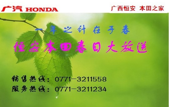 1、 2011年2月26-27日舉辦春日大團(tuán)購,廣汽本田全系春日驚喜團(tuán)購價(jià)閃亮登場。
