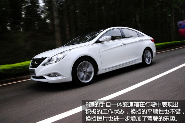 新索納塔上配備的6速手自一體變速箱,這對(duì)于北京現(xiàn)代來說應(yīng)該算是個(gè)不小的突破。6速的手自一體變速箱在行駛中表現(xiàn)出積極的工作狀態(tài),換擋的平順性也不錯(cuò),換擋撥片也進(jìn)一步增加了駕駛的樂趣。