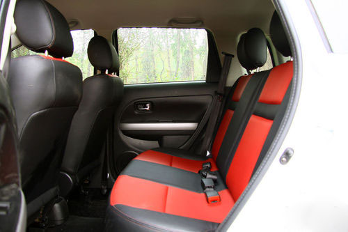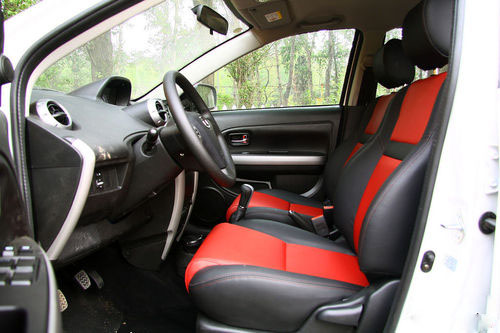 紅黑套色的座椅設(shè)計依然保留,運(yùn)動范兒令它有著十足的年輕活力和視覺沖擊力。座椅面料由原來的織物變?yōu)槠べ|(zhì)打孔面料,手感和透氣性都很不錯,整體上使炫麗CROSS內(nèi)飾的檔次感與乘坐的舒適感都提升了一步。
