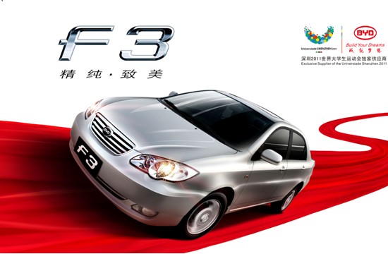 憑借著冠軍車的品質(zhì),比亞迪F3從各大汽車品牌中脫穎而出,獲得2011年深圳世界大學(xué)生運(yùn)動會汽車類獨(dú)家供應(yīng)商。