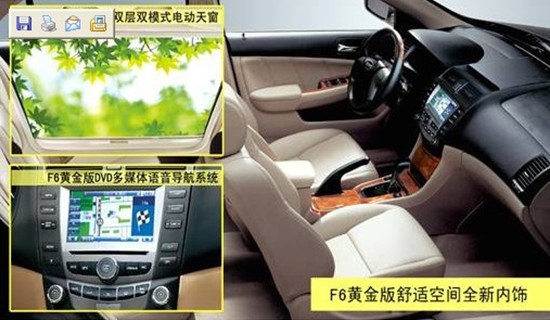 長期以來,比亞迪在追求卓越品質(zhì)的同時,依托在IT領(lǐng)域的技術(shù)積累,為旗下車型搭載了豐富的電子設(shè)備。F6車型就搭載了倒車雷達、三色顯距倒車影像監(jiān)視系統(tǒng)、中文八方向顯示防眩目內(nèi)后視鏡、NAVI語音導(dǎo)航系統(tǒng)等高端配置,更加豪華、舒適、大氣。雙模多媒體音頻輸入接口(USB+AUX)、雙溫區(qū)獨立控制自動空調(diào)、CAN-BUS電子智能管家系統(tǒng)及車內(nèi)空氣凈化系統(tǒng)等配置,都為乘客營造了更加舒適的車內(nèi)環(huán)境。