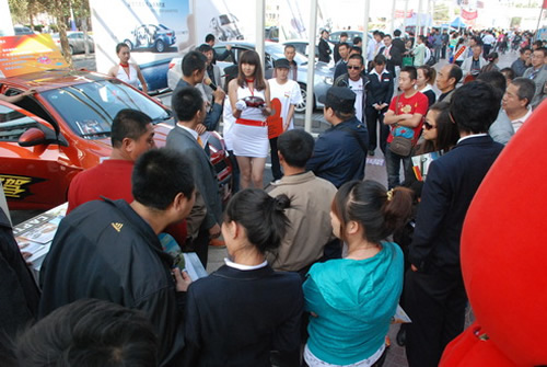絡(luò)繹不絕在東風(fēng)風(fēng)神展位前咨詢(xún)的消費(fèi)者