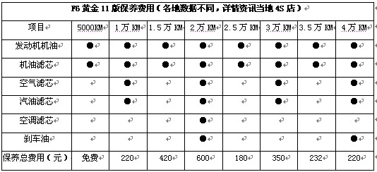 愛車的保養(yǎng)也是日常重要開支,F(xiàn)6黃金11版和新凱越在保養(yǎng)上都非常經(jīng)濟,保養(yǎng)周期均為5000公里,但相比之下F6的保養(yǎng)費用要更低一些。