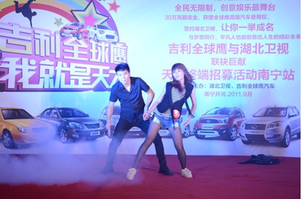 9月30日在這個(gè)風(fēng)雨交加的夜晚,我們與湖北衛(wèi)視聯(lián)袂打造的大型勵(lì)志電視節(jié)目《吉利全球鷹我就是天才》全國(guó)招募活動(dòng)的南寧站,在吉利全球鷹的車主、準(zhǔn)車主們的熱情、真誠(chéng)與全力支持下順利進(jìn)行,他們用自己嘹亮動(dòng)人的歌聲、時(shí)尚激情的舞蹈、幽默風(fēng)趣的小品等等亮點(diǎn)逐漸逐漸的點(diǎn)亮了南寧開(kāi)河全球鷹4S店的天空,他們與夢(mèng)想同行,在這個(gè)舞臺(tái)上創(chuàng)意出自己人生的精彩未來(lái),下面讓我們看看吉利車主的精彩瞬間: