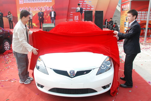 在2011(第三屆)西部名城汽車巡展陜西省渭南站展會開幕儀式中的新車揭幕環(huán)節(jié),渭南電視臺總編輯、常務(wù)副臺長樊文輝與陜西天禾汽車貿(mào)易有限公司銷售經(jīng)理賈曉安為長安悅翔3G版進(jìn)行新車揭幕。當(dāng)紅色幕布掀起,這款9月16日才剛剛上市的長安悅翔新車型呈現(xiàn)在觀眾眼前,現(xiàn)場氣氛頓時熱烈起來,這款配備了長安in call車載系統(tǒng)的時尚靚車吸引了無數(shù)渭南人的關(guān)注。