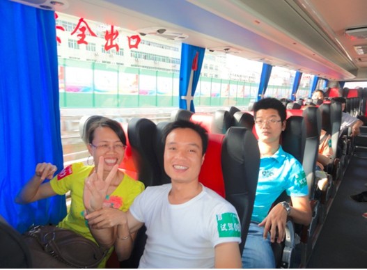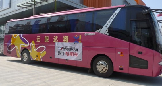 在接送大巴上,參賽選手還帶上家人來(lái)加油
