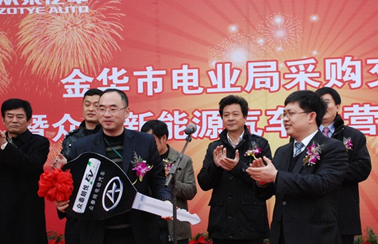 眾泰汽車(chē)向金華市電業(yè)局交付M300EV純電動(dòng)汽車(chē)