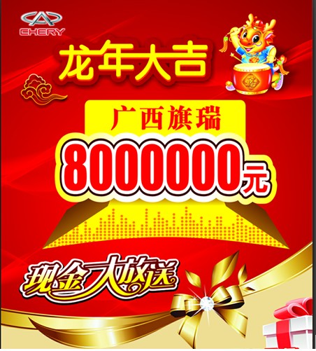 對(duì)于很多購(gòu)車者來(lái)說(shuō),他們都有著歲末購(gòu)車因車源緊張而優(yōu)惠減少的傳統(tǒng)印象。記者從奇瑞汽車獲悉,此兩次車展廣西旗瑞最后放假:8000000萬(wàn)現(xiàn)金大放送,更有不少極具誘惑力的大禮包。掀起年末最后一輪優(yōu)惠狂潮!想在春節(jié)前買車的車友們就趕快報(bào)名吧!
