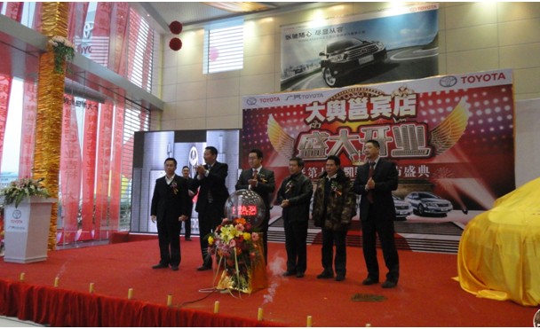 2012年1月5日,位于南寧市秀廂大道金川路2號的廣汽豐田大輿邕賓4S店盛大開業(yè),作為2012年南寧市第一家開業(yè)的汽車4S店,廣汽豐田大輿邕賓4S店無疑已經(jīng)在新年伊始贏得了市場的好彩頭。在新店開業(yè)的當(dāng)天,來自于豐田旗下最先進(jìn)的G-BOOK智能副駕系統(tǒng)的第七代凱美瑞同時(shí)上市,又為廣汽豐田大輿邕賓店贏得了滿堂彩,開業(yè)活動(dòng)雙喜臨門。而且此次活動(dòng)4s店邀請了嘉賓領(lǐng)導(dǎo)以及各大媒體朋友和廣大車主朋友,一起共同見證這激動(dòng)人心的時(shí)刻。