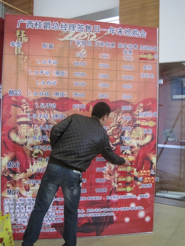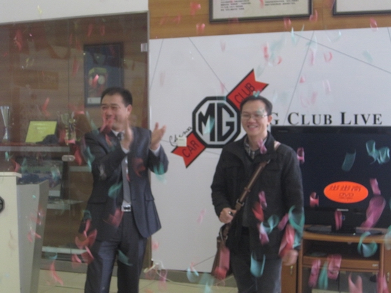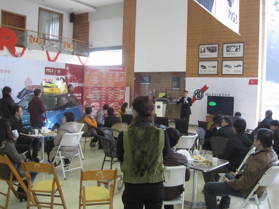 未等優(yōu)惠價格全部揭開,第一位車主就已產(chǎn)生。這是小編沒想到的,以往的團購會也好,還是類似這次的總經(jīng)理簽售,客戶都是等價格完全公布了,認真考慮一番才下訂單。相信這次這位車主已關(guān)注MG3這車有些日子了,所以優(yōu)惠一出,就迫不急待的下了訂單;顒映掷m(xù)到了下午6點鐘,據(jù)店里統(tǒng)計,當天簽售了8臺車,也就是說當天有8名MG新車主可以開著新車回家過年了。