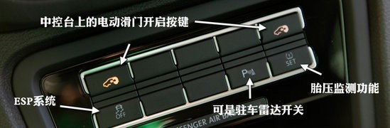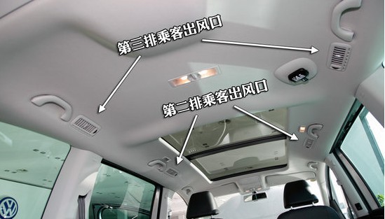兩側(cè)的電動滑動門非常便利,擁有多種開啟方式,其中包括中控臺上,B柱兩側(cè),通過遙控鑰匙也可以來控制。還有就是輕拉車門把手電動門也會自動開啟。夏朗舒適型標配ESP功能,另外帶有胎壓監(jiān)測和泊車輔助功能。雙區(qū)自動恒溫空調(diào)也是我們熟悉的造型,由于車內(nèi)空間大,因此全車擁有多個空調(diào)出風口。后面的空調(diào)溫度可以單獨調(diào)節(jié),大量出風口都集成在車頂。