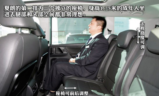 夏朗全部裝配黑色的真皮坐椅,駕駛席座椅僅靠背角度和腰部支撐功能為電動(dòng)調(diào)節(jié),座椅前后和高度為手動(dòng)調(diào)節(jié)。第二排為三個(gè)獨(dú)立的座椅,可同時(shí)乘坐3人,另外還有小桌板可供使用,享受航空般的待遇。第三排座椅可以全部放倒,當(dāng)打開(kāi)后為兩個(gè)獨(dú)立座椅,夏朗對(duì)第三排乘客的照顧也非常周到,除了兩側(cè)專(zhuān)用的儲(chǔ)物格外,頭頂還有獨(dú)立的空調(diào)出風(fēng)口,另外第三排乘客的腿部空間也不錯(cuò),成年人坐進(jìn)去腿部有一拳的余量。