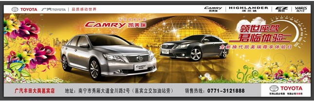 主營業(yè)務(wù):廣汽豐田旗下全系車型,凱美瑞、漢蘭達(dá)、雅力士等車型的銷售、維修保養(yǎng)。