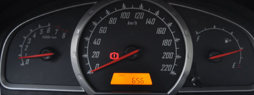 儀表盤也很清晰可見,轉(zhuǎn)速、時(shí)速和油量表從左到右排列。